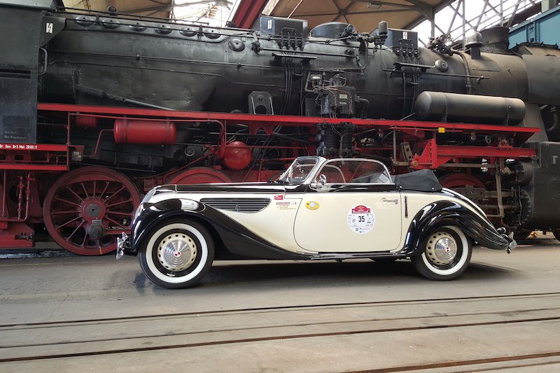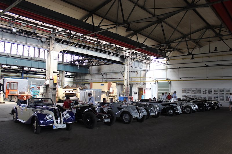 Eines der Ziele der Rallye war die Theaterstadt Meiningen mit ihrem seit vielen Jahrzehnten existierenden Werk zur Restauration und Reparatur historischer Dampflokomotiven. Mit unseren Fahrzeugen wurden wir direkt im Werk empfangen und natürlich mit wunderbarer Thüringer Rostbratwurst kulinarisch verwöhnt.